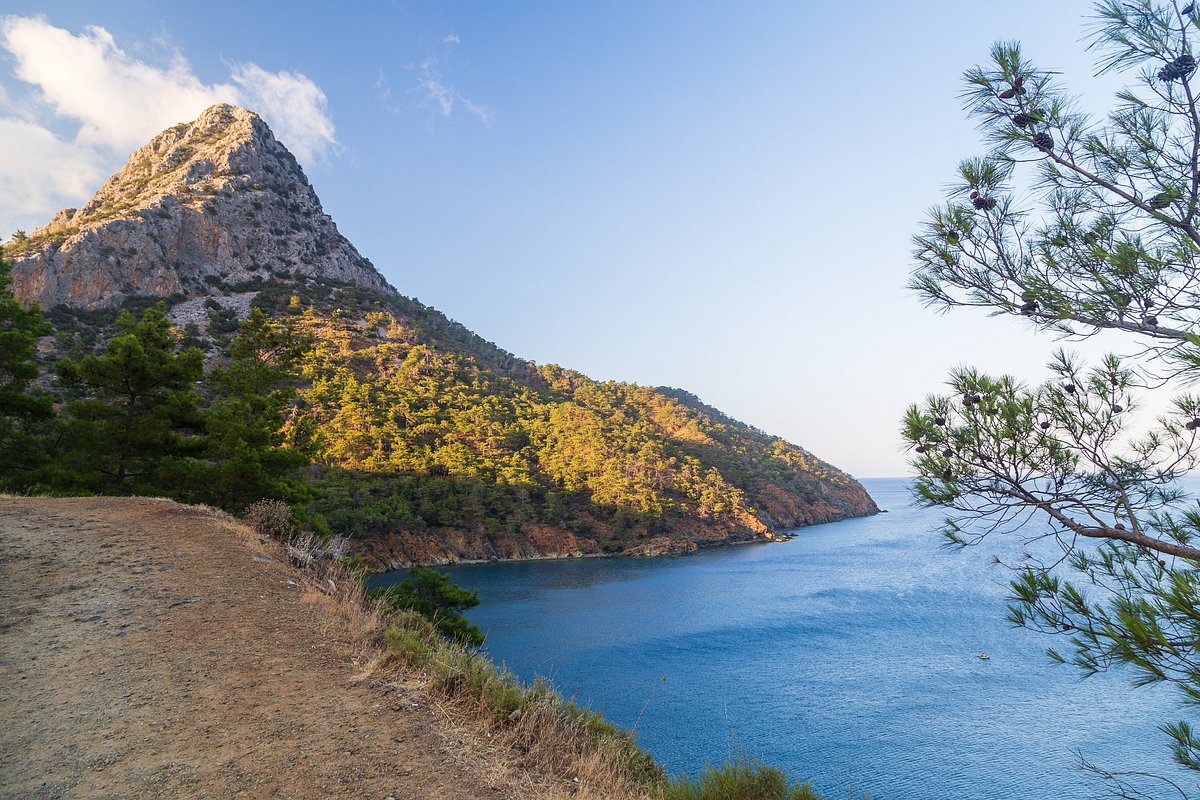 Пляж Адрасан, расположенный на потрясающем Бирюзовом побережье Турции в Анталье, представляет собой естественную бухту в форме подковы, где горы встречаются с морем. Он известен своей безмятежной атмосферой и служит популярным центром для морских прогулок, особенно на остров Сулуада. Пляж предлагает сочетание мелкого песка и гальки, с пологим входом в чистые, часто спокойные воды, что делает его подходящим для семей и тех, кто ищет расслабляющее плавание.
