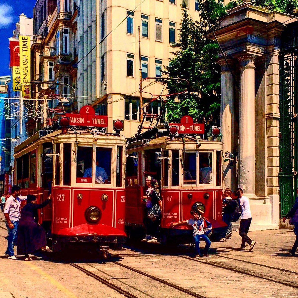 Трамвай Галатасарай, официально известный как T2 (Ностальгический трамвай), представляет собой историческую трамвайную линию, проходящую по улице Истикляль в районе Бейоглу Стамбула. Восстановленный в начале 1990-х годов, он возрождает часть наследия общественного транспорта Стамбула начала 20 века. Этот очаровательный красный трамвай стал культовым символом города, предлагая как местным жителям, так и туристам уникальный способ познакомиться с одной из самых оживленных улиц Стамбула.