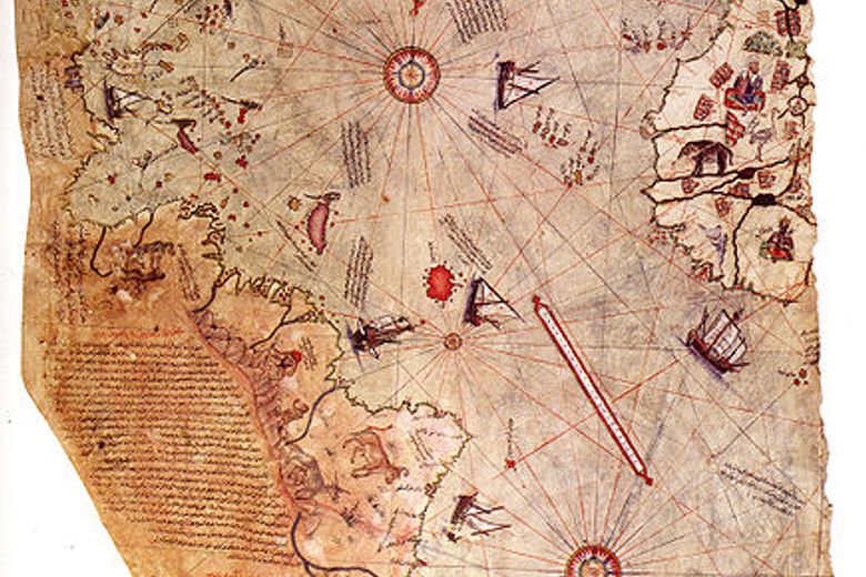 Карта Пири-реиса, хранящаяся в историческом дворце Топкапы, является значимой османской картой мира XVI века. Нарисованная на газельей коже адмиралом и картографом Пири-реисом в 1513 году, она приобрела известность благодаря раннему изображению американских континентов, всего через 21 год после экспедиций Колумба. Карта является не только картографическим чудом своего времени, но и богатым историческим документом, содержащим обширные аннотации, подробно описывающие ее источники, некоторые из которых, как сообщается, восходят ко временам Александра Македонского, а также предлагающие часто красочные комментарии Пири-реиса к изображенным регионам.