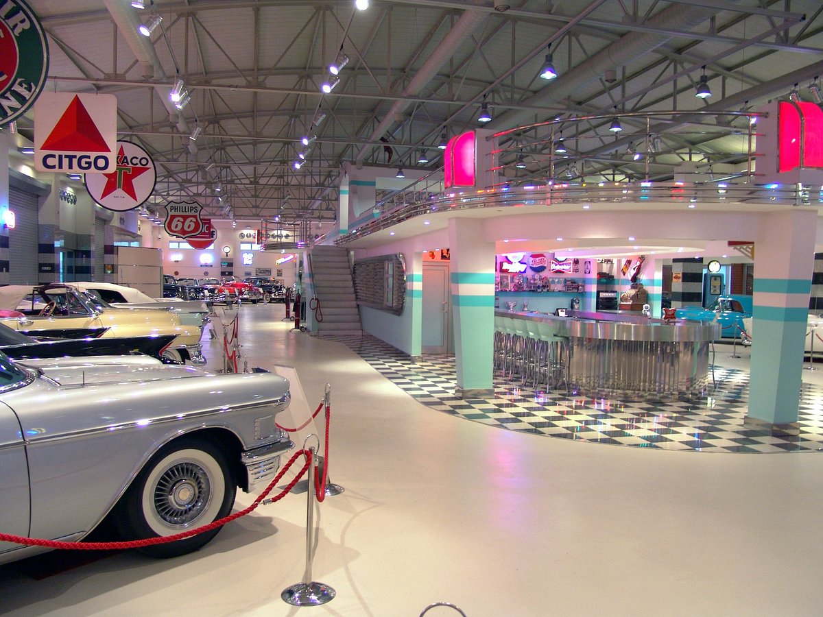 Посетители единодушно хвалят оформление музея в стиле 1950–1960-х годов с неоновыми вывесками, музыкой той эпохи и ретро-закусочной эстетикой, которая переносит гостей в определённый период времени. Помещение кондиционировано, хорошо освещено и безупречно чистое — деталь, которую многие посетители выделяют как исключительную. Персонал отмечается как дружелюбный, говорящий по-английски и услужливый. Музей также принимает приватные мероприятия, корпоративные функции и праздники. Небольшое кафе предлагает напитки и закуски, посетители упоминают возможность отдохнуть у моря после осмотра. Коллекция привлекает как преданных автолюбителей, так и семьи с детьми, поскольку визуальное великолепие и ностальгическая атмосфера увлекают посетителей независимо от знаний об автомобилях.