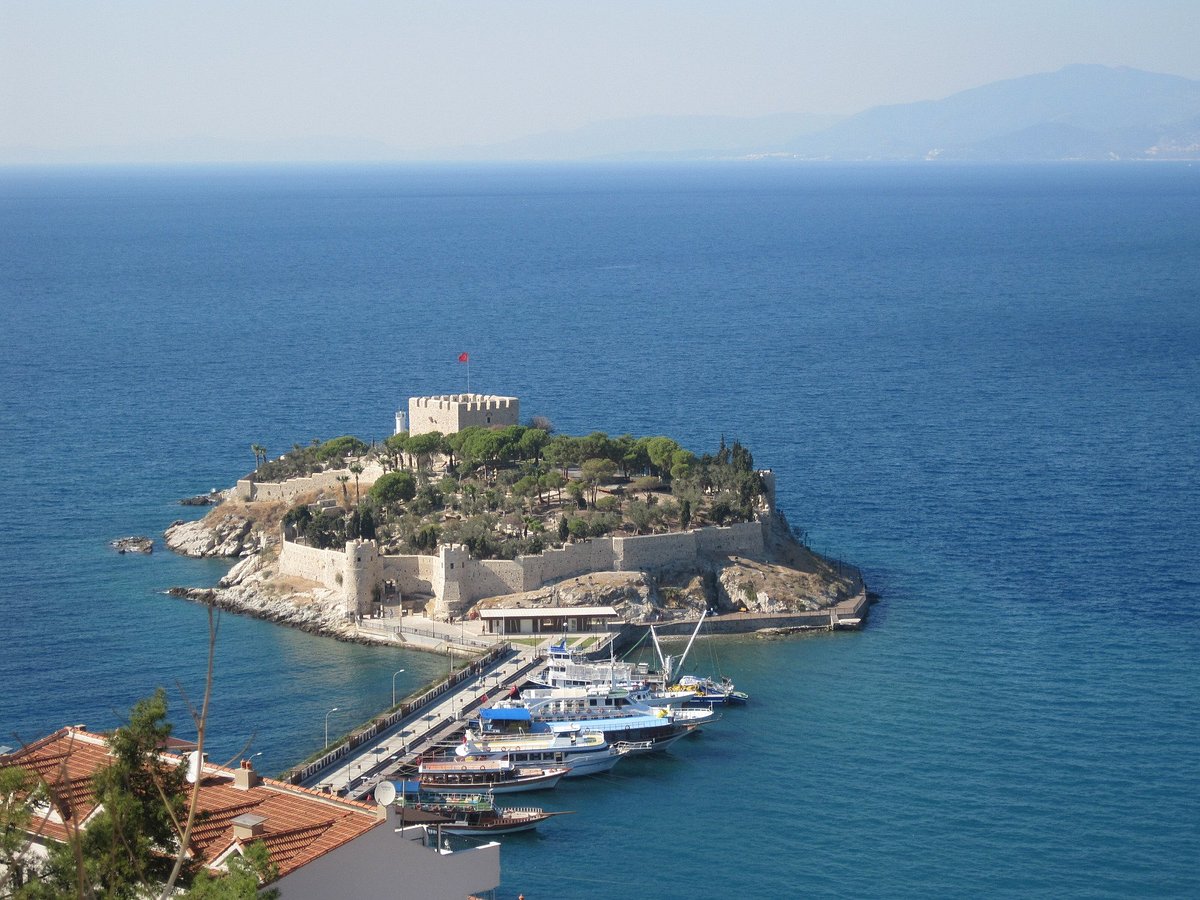Замок Кушадасы, известный на местном уровне как замок Гюверджинада, представляет собой историческую крепость, расположенную на Голубином острове, небольшом островке, ныне соединенном с материком живописной дамбой. Эта знаковая достопримечательность, относящаяся к византийскому и османскому периодам, служила стратегическим форпостом против пиратских нападений. Сегодня она является символом Кушадасы, предлагая сочетание исторической интриги и природной красоты.