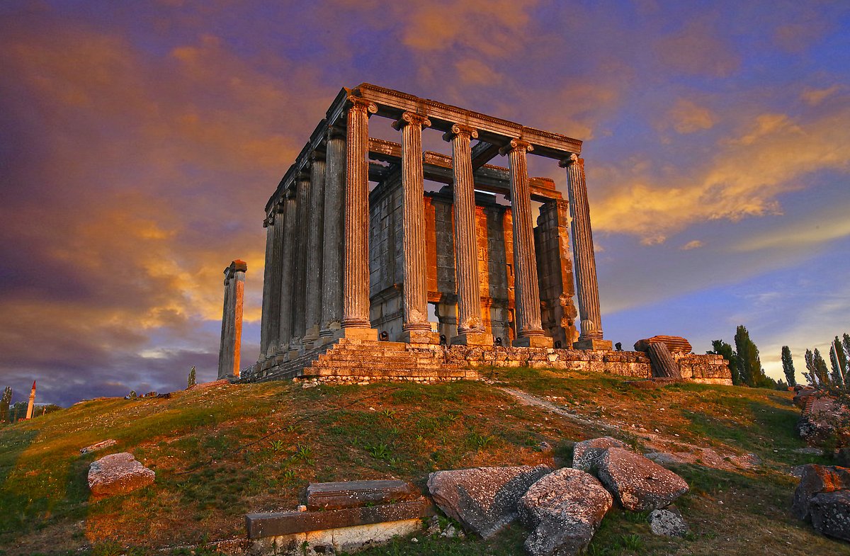 Древний город Айзаной, расположенный в районе Чавдархисар провинции Кютахья, является значимым археологическим объектом, процветавшим в римский период. Он особенно известен своим удивительно хорошо сохранившимся Храмом Зевса, который считается одним из лучших образцов римской архитектуры в Анатолии. Помимо храма, Айзаной может похвастаться уникальным комплексом стадиона-театра, римскими банями, колоннадной улицей и тем, что считается первой в мире фондовой биржей, что делает его важным окном в древнюю городскую жизнь и экономические практики.