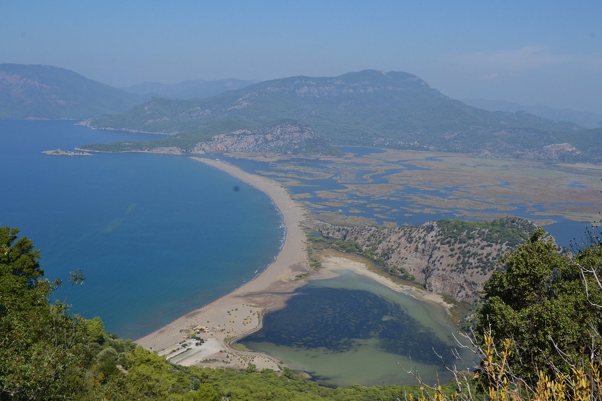 Пляж Изтузу, широко известный как Черепаший пляж, представляет собой узкую песчаную косу длиной 4,5 километра, образующую естественный барьер между пресноводной дельтой реки Дальян и Средиземным морем. Он имеет глобальное значение как одно из основных мест размножения морских черепах логгерхедов (Caretta caretta) в Средиземноморье, что привело к его строгой охране и сохранению его естественного состояния.