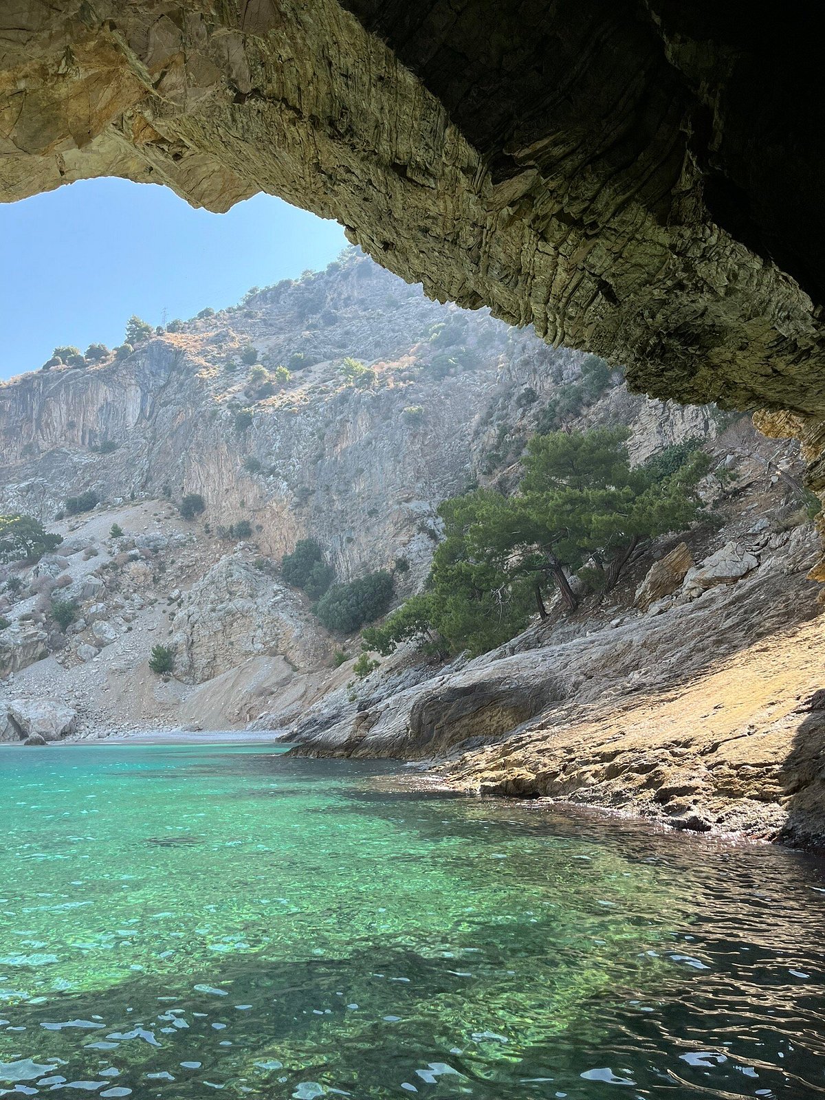 Голубая пещера (Мави Магара) — это завораживающая природная морская пещера, расположенная вдоль потрясающего побережья недалеко от Олюдениза, Турция. Она известна своими невероятно чистыми, почти прозрачными бирюзовыми водами, которые создают поистине уникальное визуальное впечатление. Хотя это не огромная пещера, её красота заключается в ярком цвете воды и безмятежной атмосфере внутри, что делает её популярной остановкой для тех, кто исследует регион на лодке.