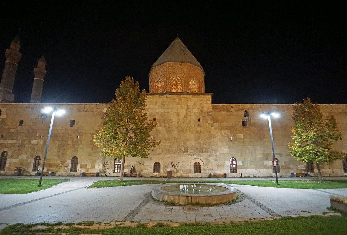 Медресе Шифаие, первоначально известное как Дарушшифа (Дом исцеления), представляет собой выдающийся сельджукский комплекс XIII века в Сивасе. Построенное в 1217 году султаном Иззеддином Кейкавусом I, оно служило как больницей, так и медицинским учебным заведением, подчеркивая сложные системы здравоохранения и образования сельджукского периода. Его историческое значение заключается в роли одной из самых ранних и передовых медицинских школ в регионе, которая продолжала функционировать до начала XX века.